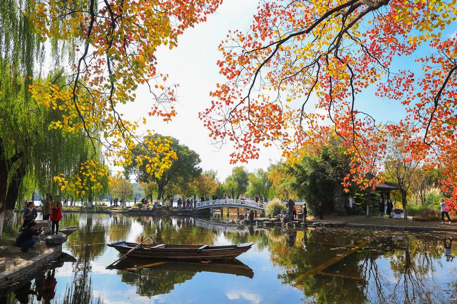 【新華社北京11月16日】中國各地では、秋の名殘を惜しむ鮮やかな景色が初冬の季節に趣を加えている。