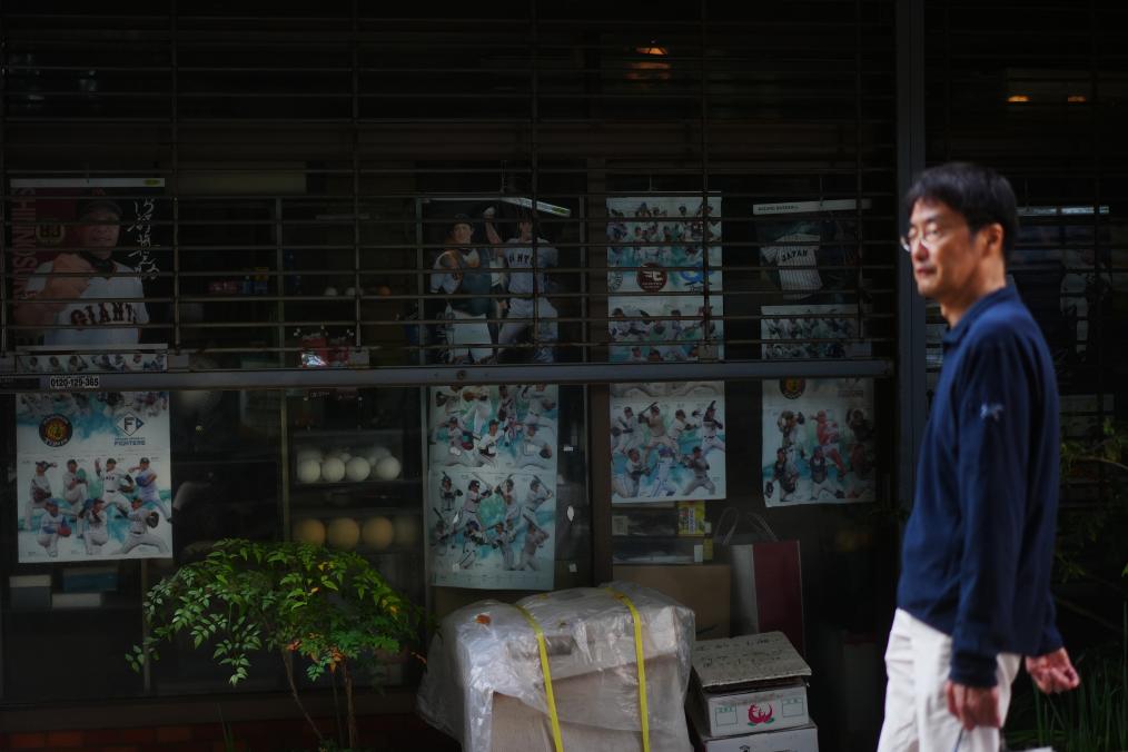 16日、東京でシャッターを半分閉めた店舗の前を歩く歩行者。(東京=新華社記者/賈浩成)