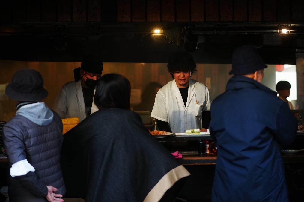 16日、東京にある飲食店で働く店員。(東京=新華社記者/賈浩成)