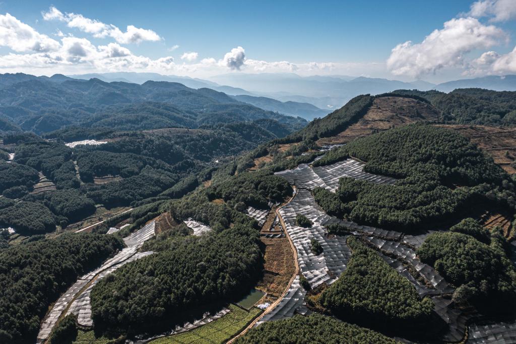 17日、ワサビ栽培地のある雲南省保山市隆陽區。(ドローンから、保山=新華社記者/王冠森)