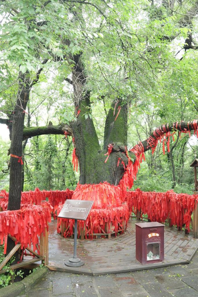 ヘトゥアラ城の正白旗衙門前に立つノニレの古木。ホンタイジが出征のたびに祈りを捧げたといわれる。(7月4日撮影、撫順=新華社記者/藍建中)
