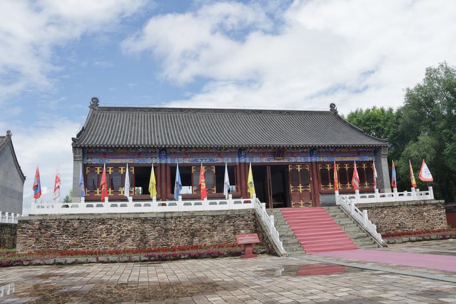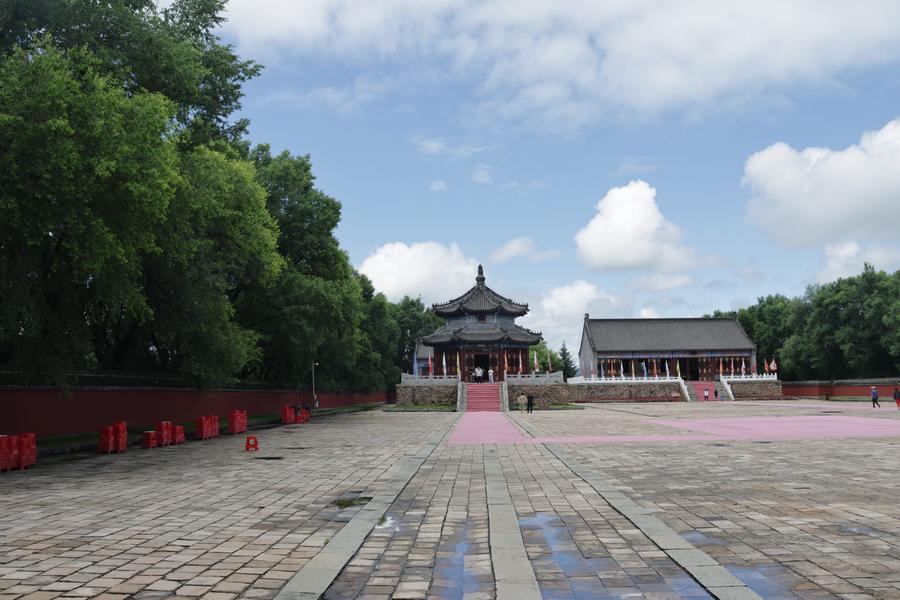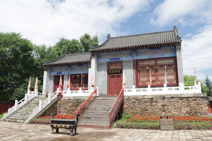 ヘトゥアラ城汗宮大衙門の後ろに立つシャーマン神殿。(7月4日撮影、撫順=新華社記者/藍建中)
