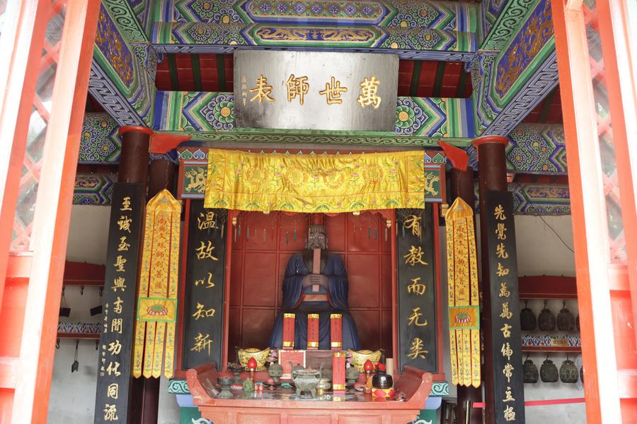 ヘトゥアラ城大成殿內の孔子像。(7月4日撮影、撫順=新華社記者/藍建中)