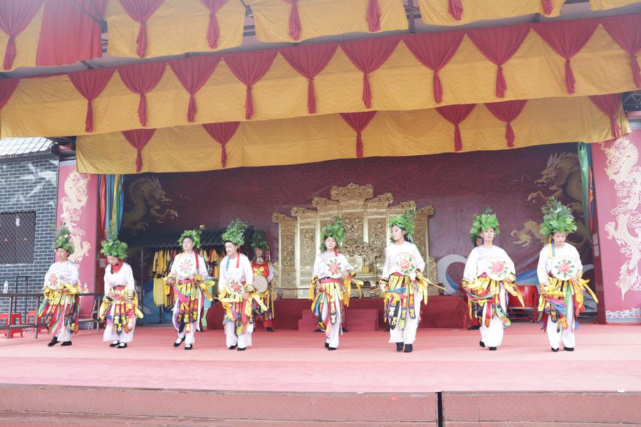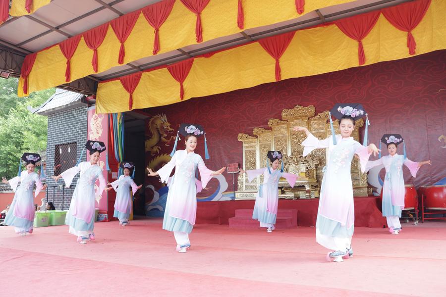 ヘトゥアラ城で披露された満族の祭祀(さいし)舞踴。(7月4日撮影、撫順=新華社記者/藍建中)