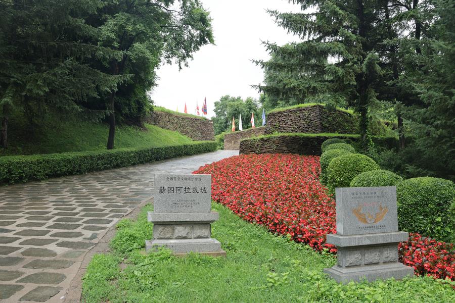 ヘトゥアラ城汗宮大衙門の中庭。(7月4日撮影、撫順=新華社記者/藍建中)