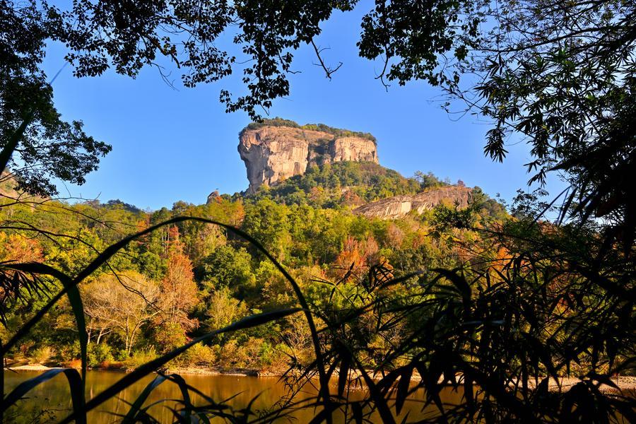11月30日、福建省武夷山市の九曲渓流域にそびえる大王峰。(武夷山=新華社記者/姜克紅)