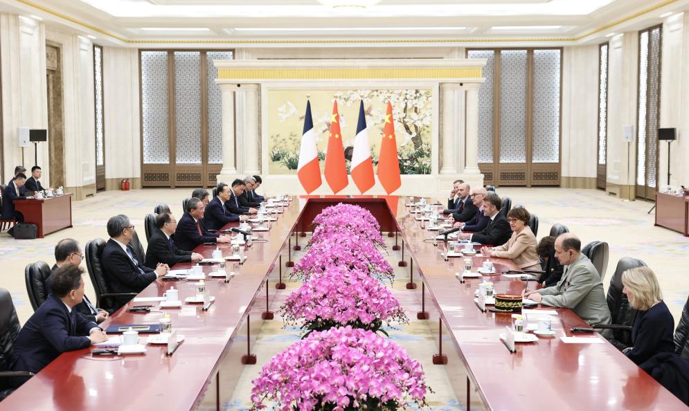 4日、李強総理とマクロン大統領の會談の様子。(北京=新華社記者/黃敬文)