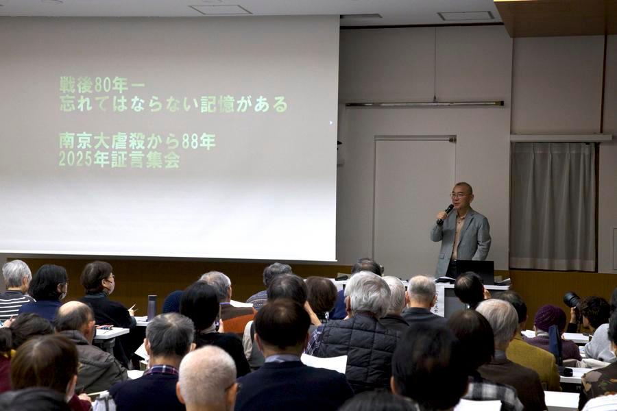 集會を主催した日本の市民団體「ノーモア南京の會」は長年にわたり、毎年12月13日前後に東京などの都市で南京大虐殺の証言集會の開催を続け、日本社會が侵略の歴史に真剣に向き合うよう働きかけている。今年は映像ディレクターの原義和さんを招き、このほど公開された原さんのドキュメンタリー作品を紹介した。作品は日本兵數人の「軍中日記」や関連の回想録を手がかりとし、個人の視點から戦爭の殘酷さを描き出している。