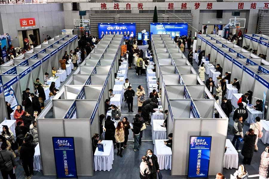 【新華社フフホト12月14日】中國內モンゴル自治區フフホト市の內モンゴル財経大學で13日、「2025年就業・起業成果展および大型就職説明會」が開かれた。131社が參加し、金融、情報技術、教育訓練などの分野で2500人分以上の求人を提供した。