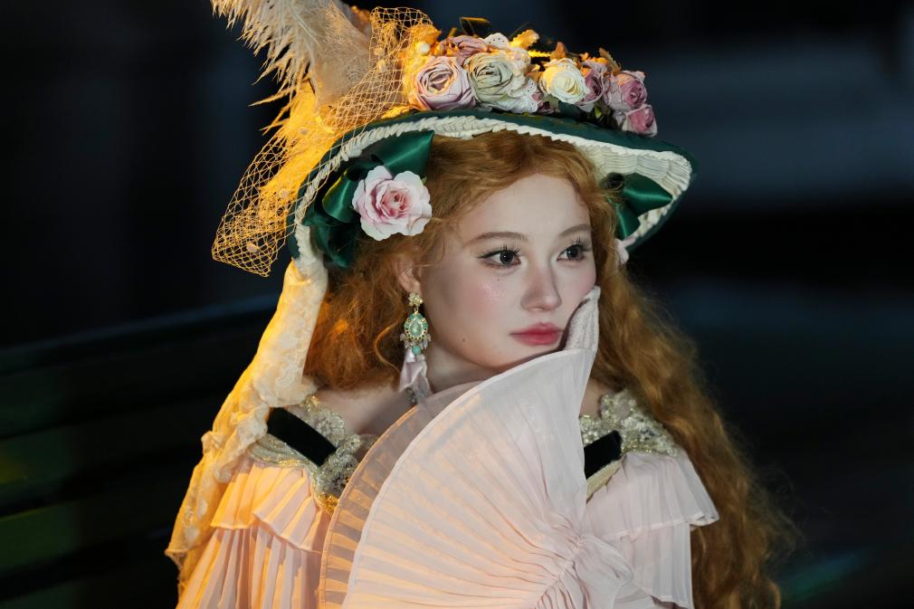 15日、ハルビン市の聖ソフィア大聖堂周辺でドレスを着てポーズをとる観光客。(ハルビン=新華社記者/王松)