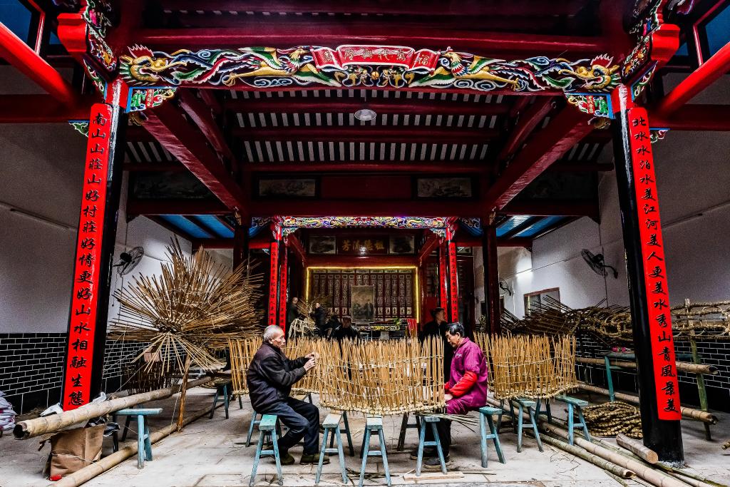 郴州市汝城県北水村で「香火竜」を作る住民。(長沙=新華社配信/蔣才成)