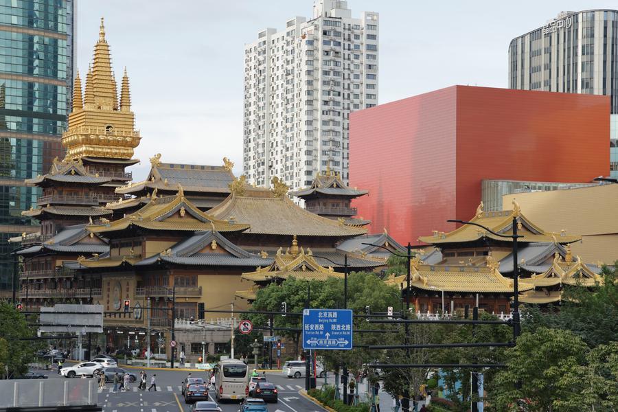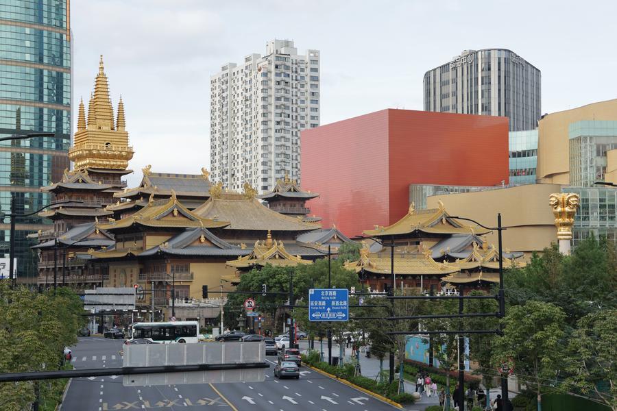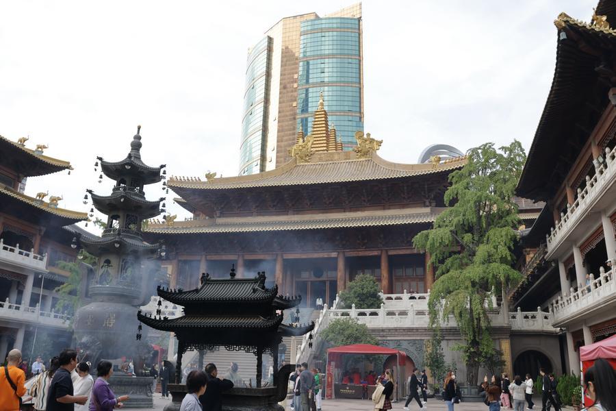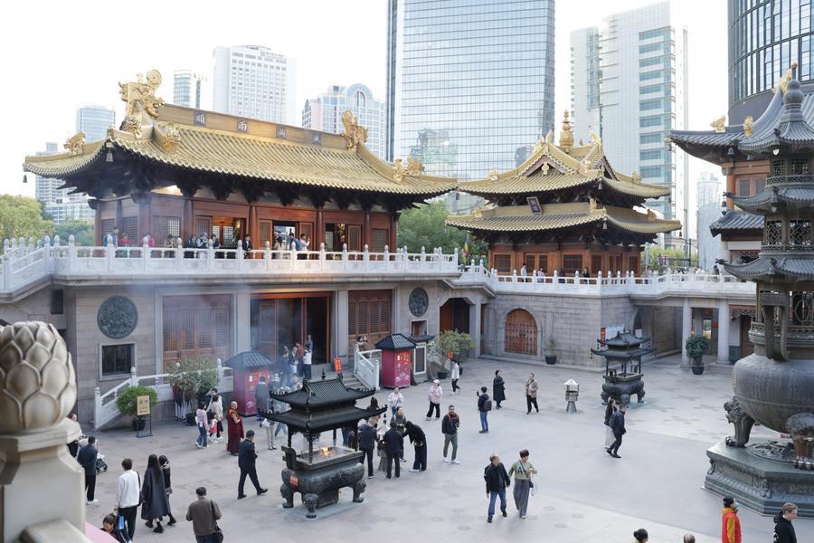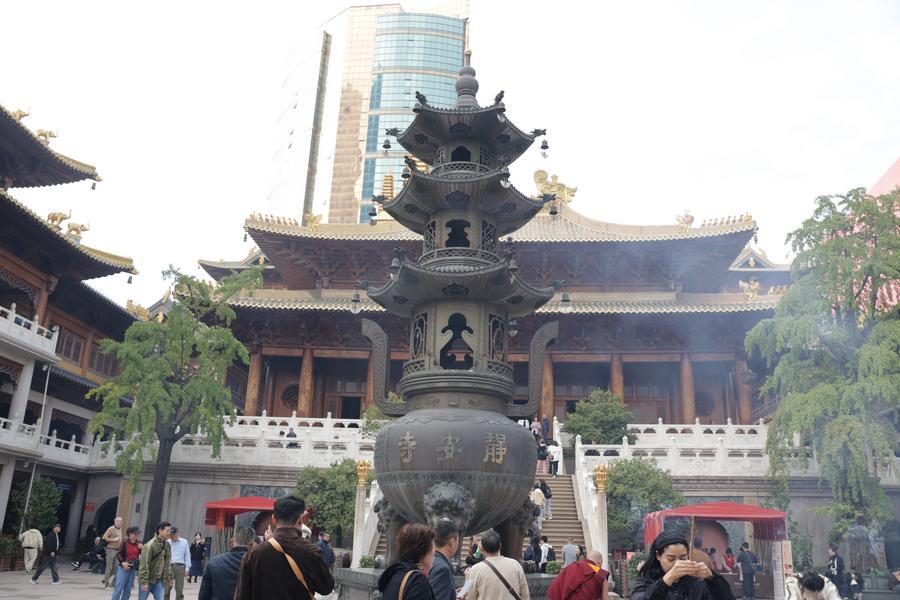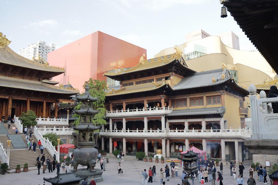 靜安寺の外観。(11月3日撮影、上海=新華社記者/藍建中)