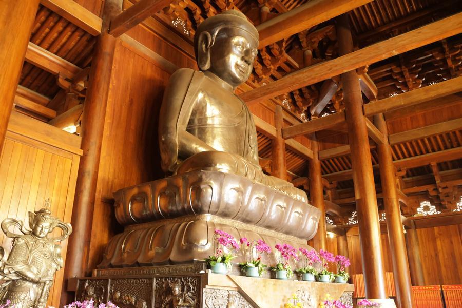 純銀15トンで鋳造した靜安寺・大雄寶殿の釈迦牟尼(しゃかむに)仏像。(11月3日撮影、上海=新華社記者/藍建中)