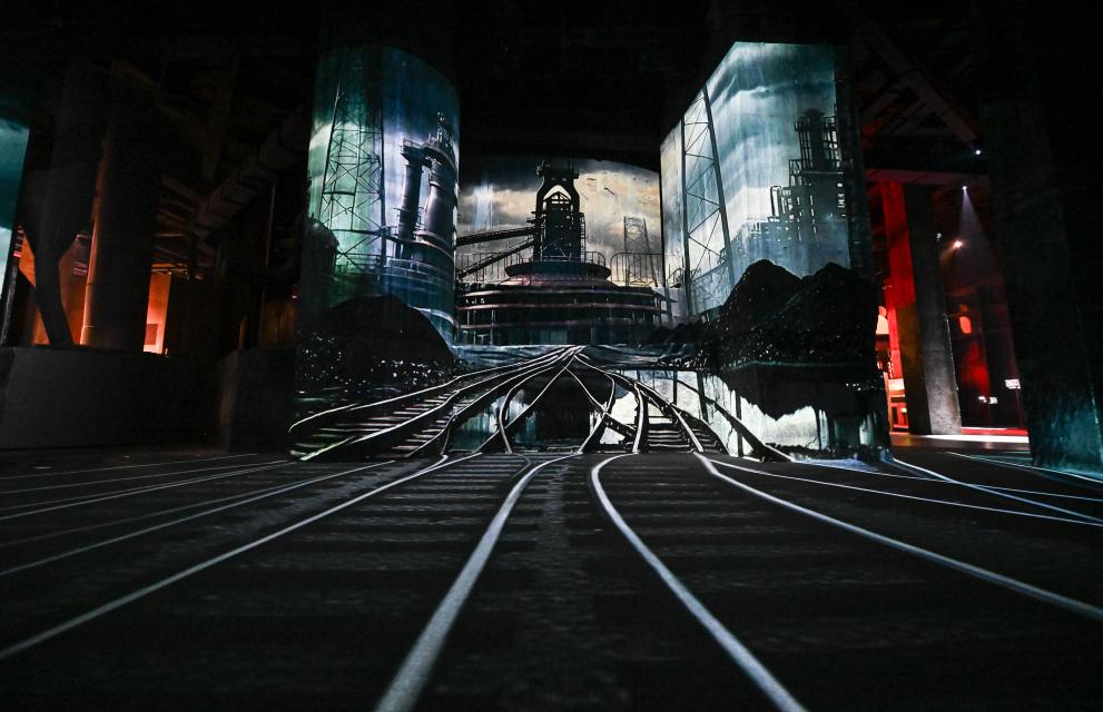 18日、「鋼鉄時代」沒入型展の「高爐劇場」エリア。(北京=新華社記者/陳鍾昊)
