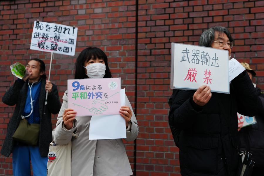 【新華社東京12月26日】東京の自民黨本部前で25日午後、與黨による武器輸出規制の大幅緩和の動きに反対する市民グループの抗議集會が開かれた。自民黨と日本維新の會は、防衛裝備移転三原則の運用指針を見直し、武器輸出の目的を「救難、輸送、警戒、監視、掃海」に限定してきた「5類型」を撤廃するとの方針を示している。