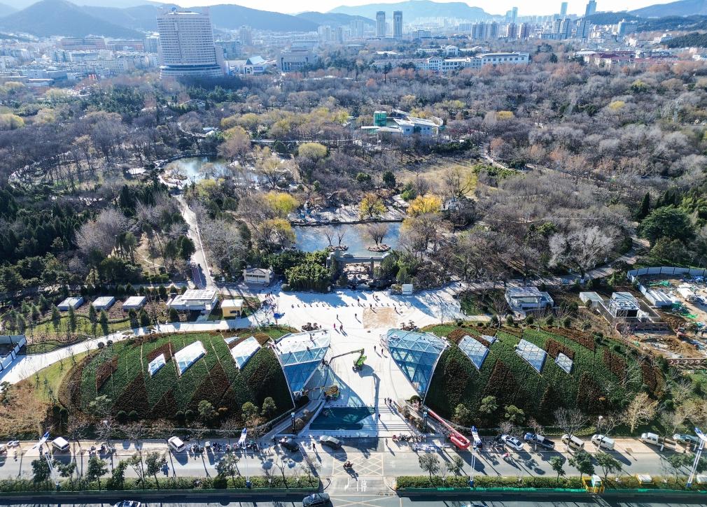 25日、済南軌道交通4號線の泉城公園駅。(ドローンから、済南=新華社記者/朱崢)