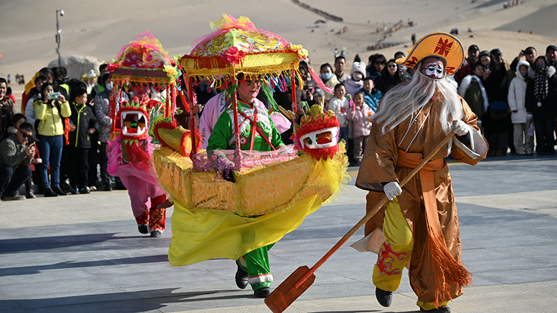 鳴沙山・月牙泉風景區で伝統行事「社火」 甘粛省敦煌市
