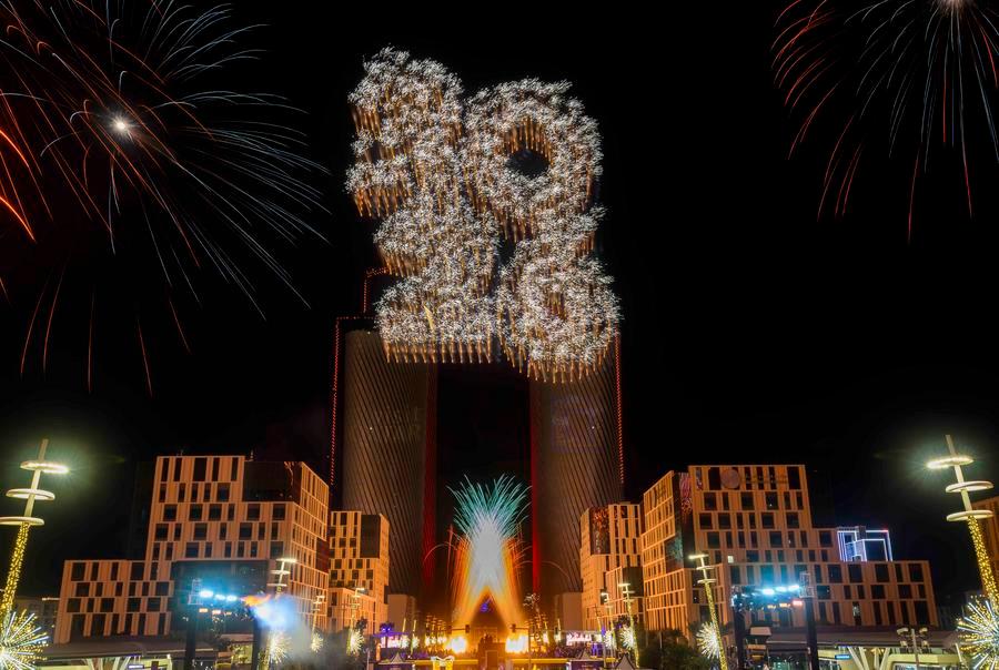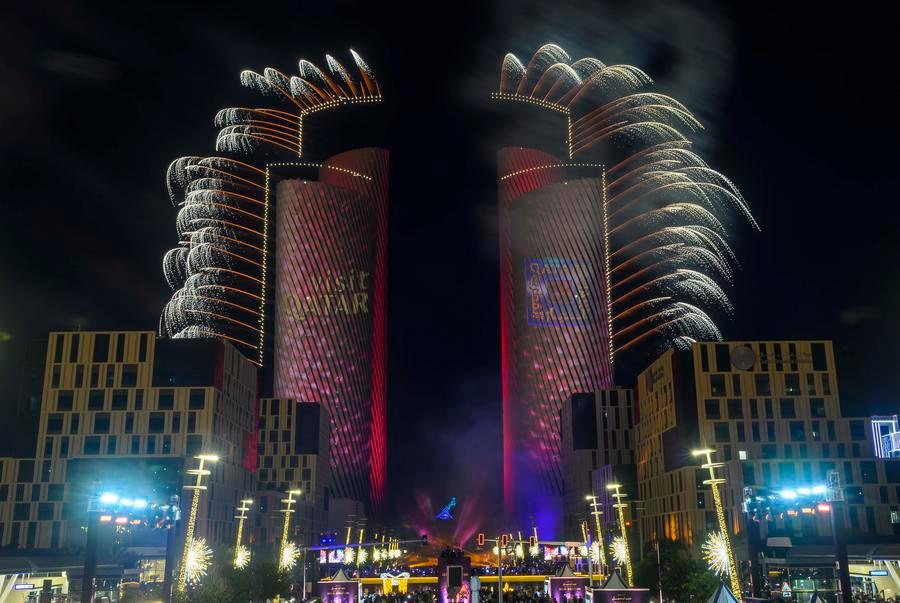 1日、カタールの首都ドーハで行われた新年のイベント。(ドーハ=新華社配信)