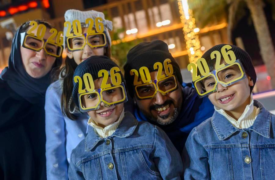 1日、カタールの首都ドーハで新年を祝う人たち。(ドーハ=新華社配信)
