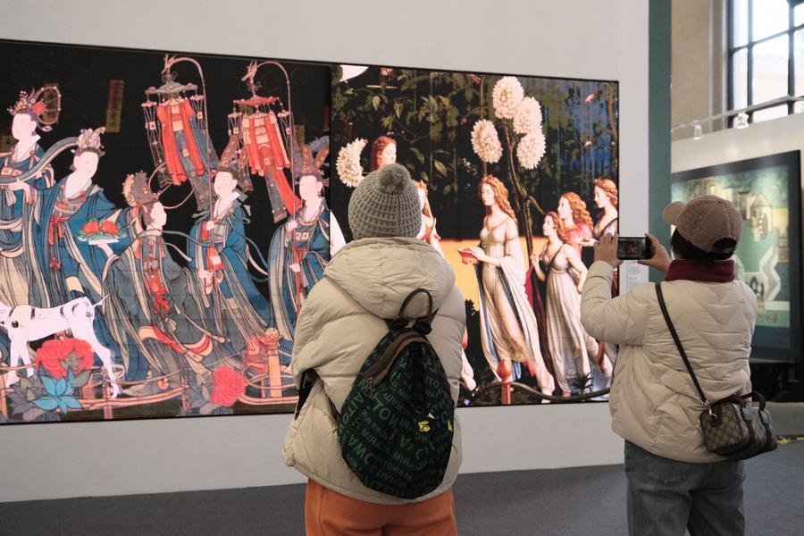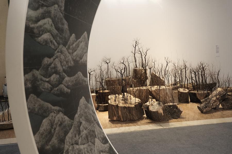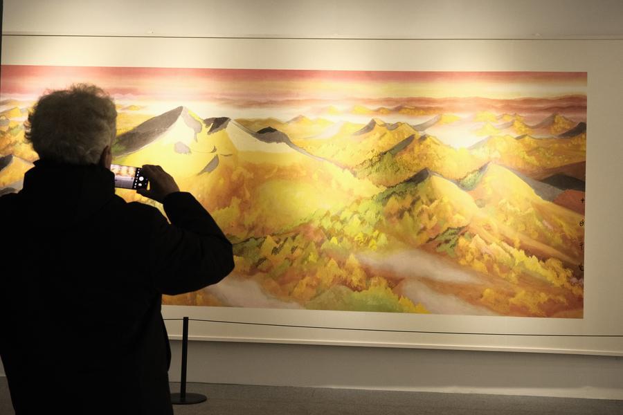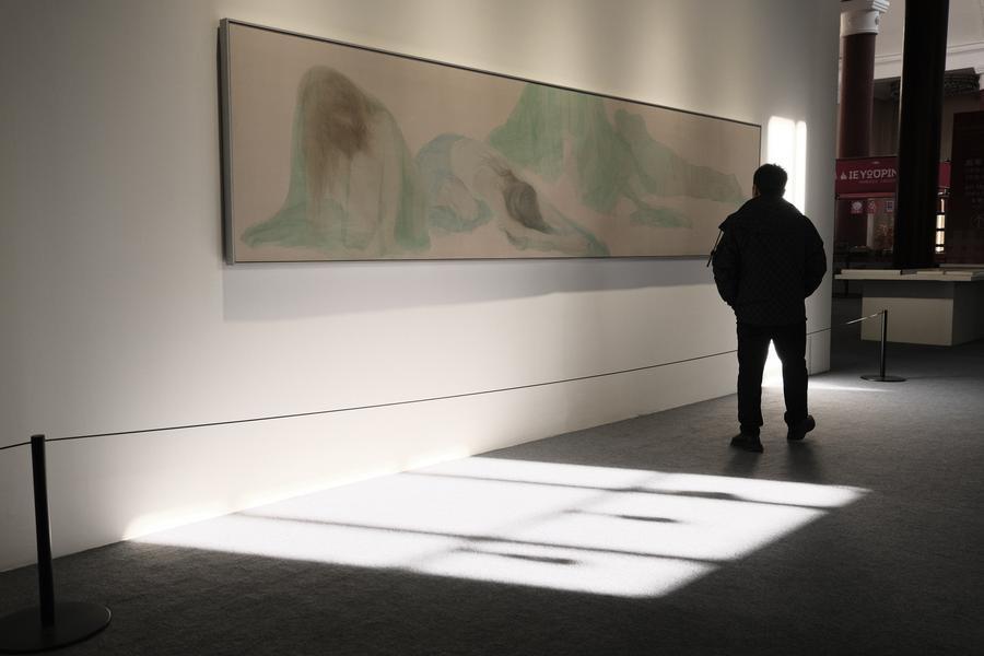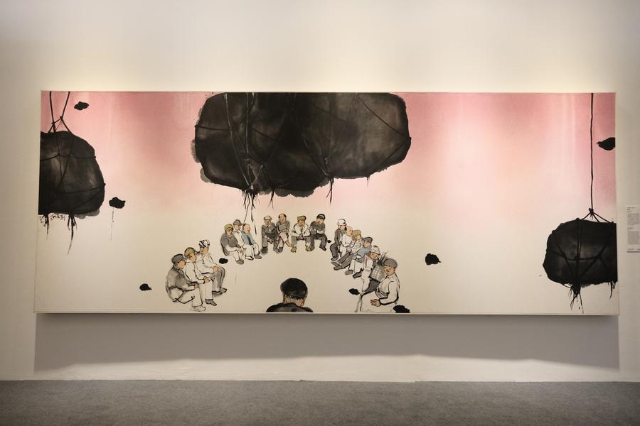 12月30日、北京國際美術ビエンナーレ國際現代水墨蕓術展の展示作品。(北京=新華社記者/李卓璠)