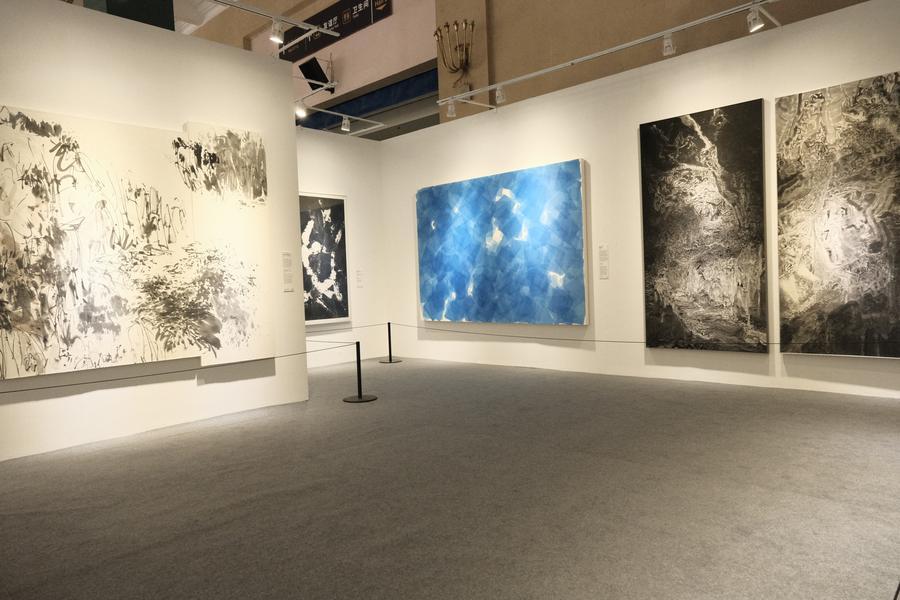 12月30日、北京國際美術ビエンナーレ國際現代水墨蕓術展の展示ホール。(北京=新華社記者/李卓璠)