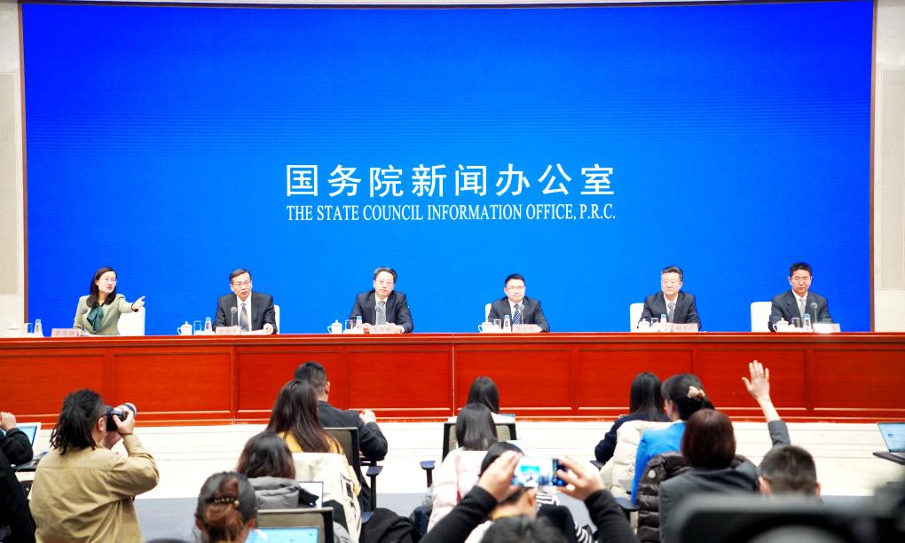 5日、國務院新聞弁公室が開いた長江経済ベルトの10年間の発展成果を紹介する記者會見。(北京=新華社記者/潘旭)