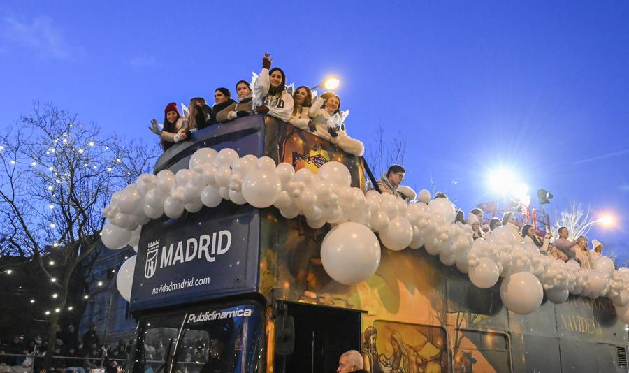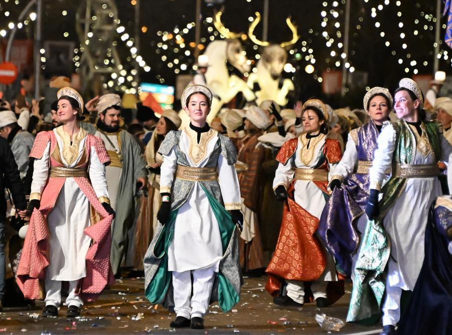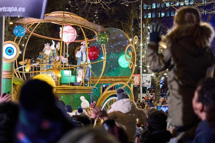 5日、スペイン・マドリードで行われた東方三博士の日を祝うパレード。(マドリード=新華社記者/程敏)