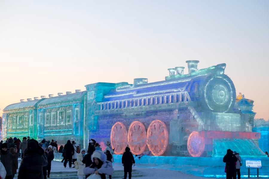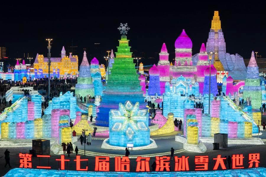 【新華社ハルビン1月6日】中國黒竜江省ハルビン市の氷雪テーマパーク「ハルビン氷雪大世界」で5日、「第42回中國・ハルビン國際氷雪祭り」が開幕した。