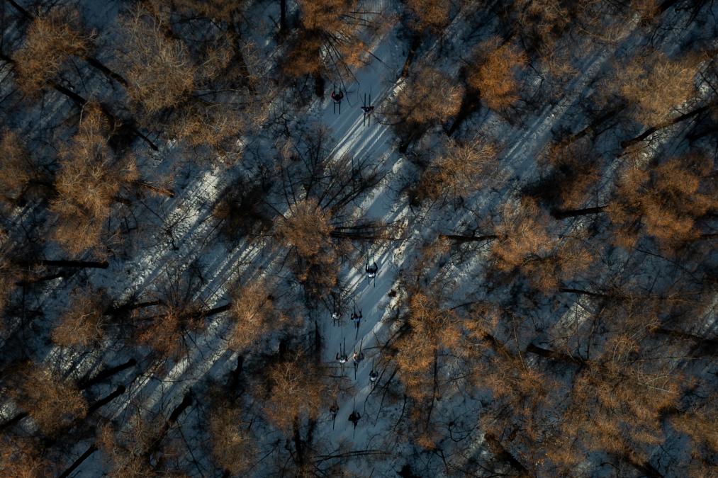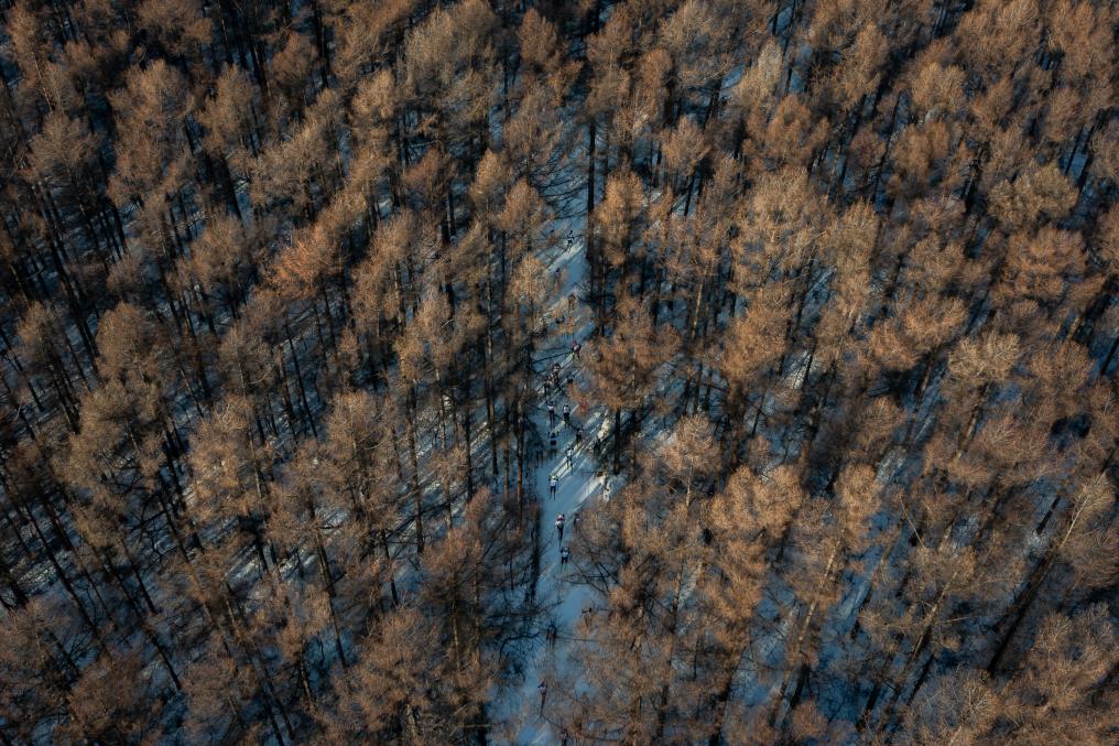 4日、バーサーロペット・チャイナの會場で競技に參加する選手たち。(ドローンから、長春=新華社記者/許暢)