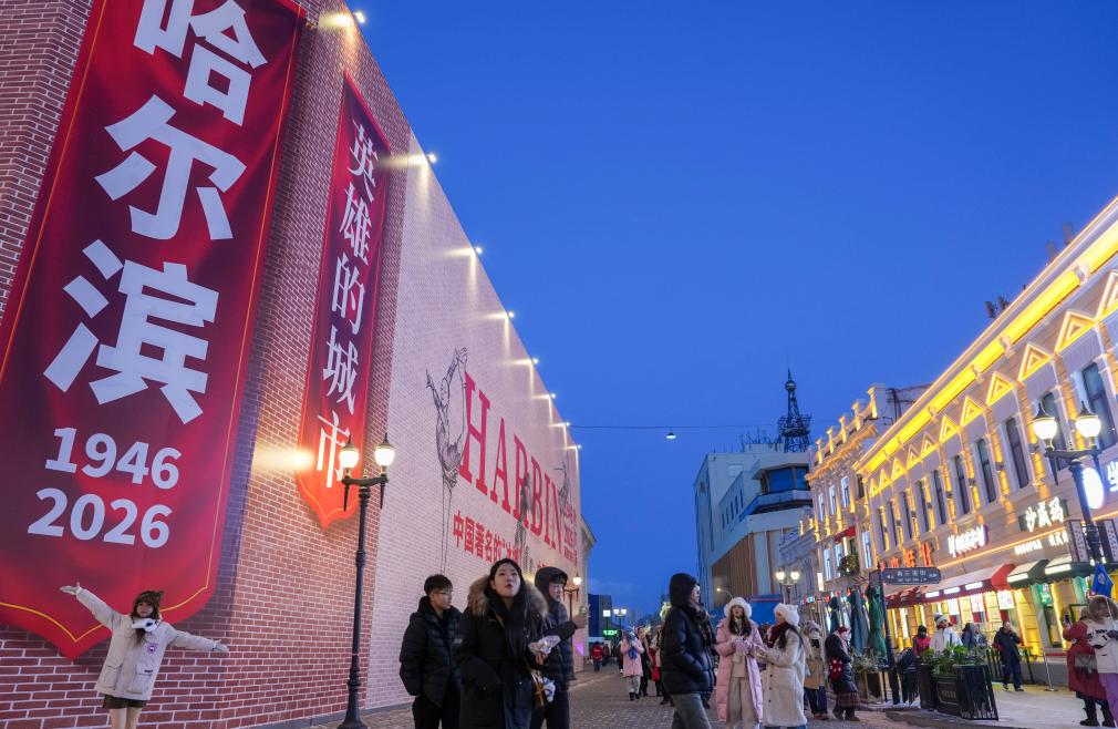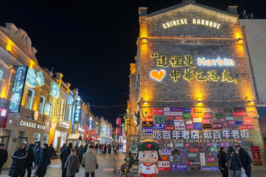 【新華社ハルビン1月15日】中國黒竜江省ハルビン市の中華バロック歴史文化街區が冬季観光の最盛期を迎えた。西洋と中國の様式が融合した約100年前の建築物も冬景色の中で一層の魅力を放っている。