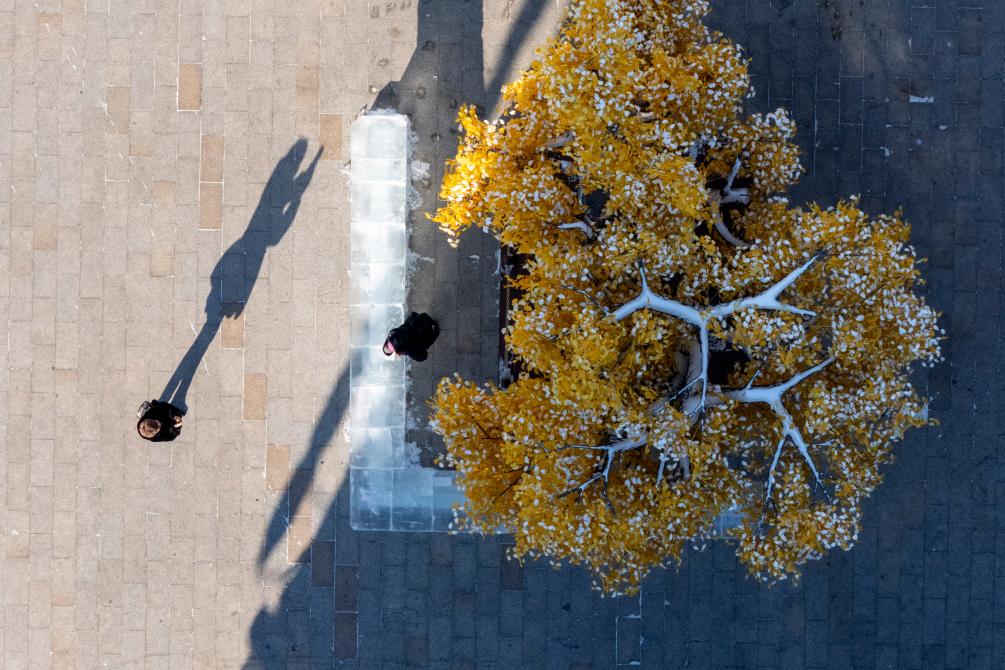 14日、中華バロック歴史文化街區を散策する観光客。(ドローンから、ハルビン=新華社記者/張濤)