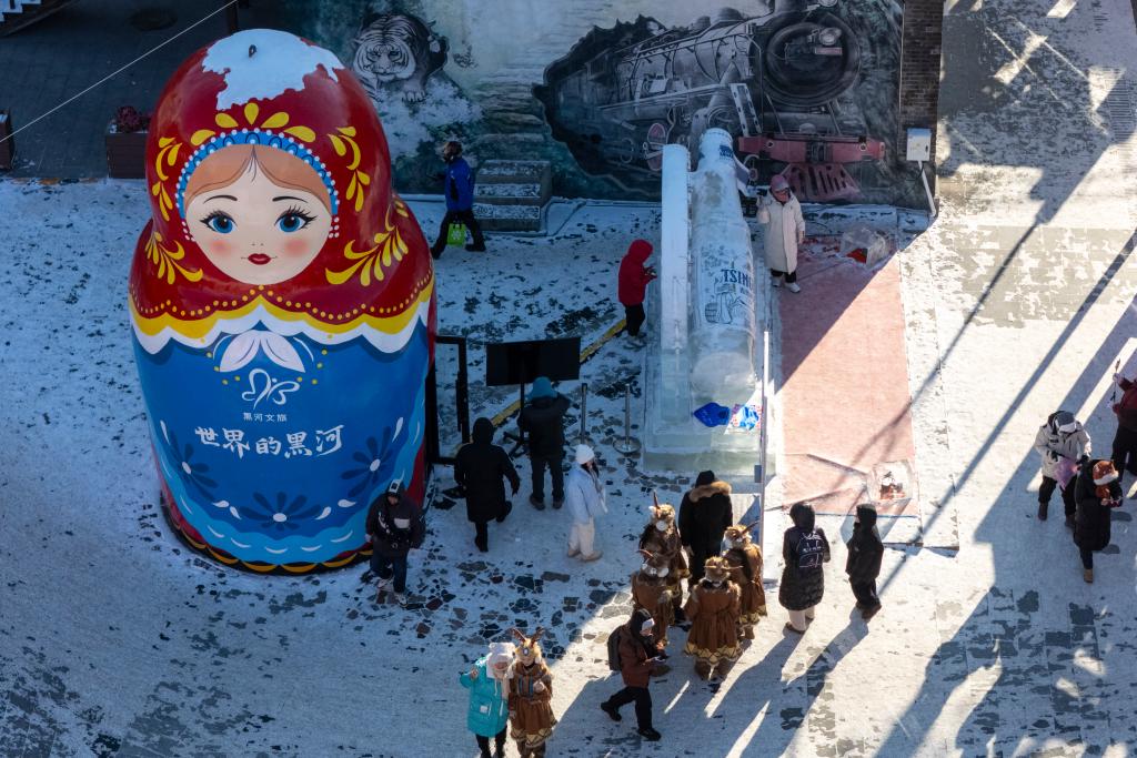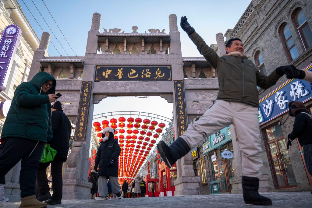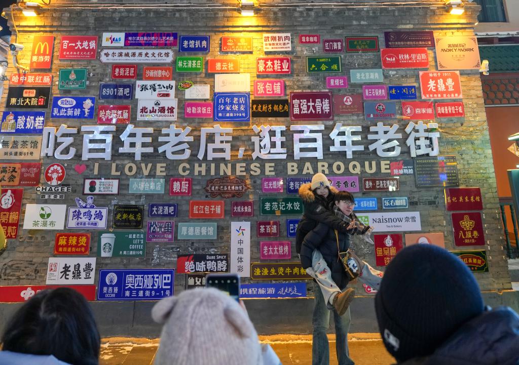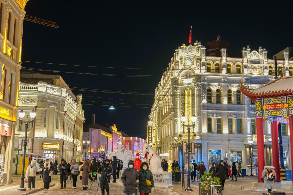 13日、中華バロック歴史文化街區を散策する観光客。(ハルビン=新華社記者/王建威)