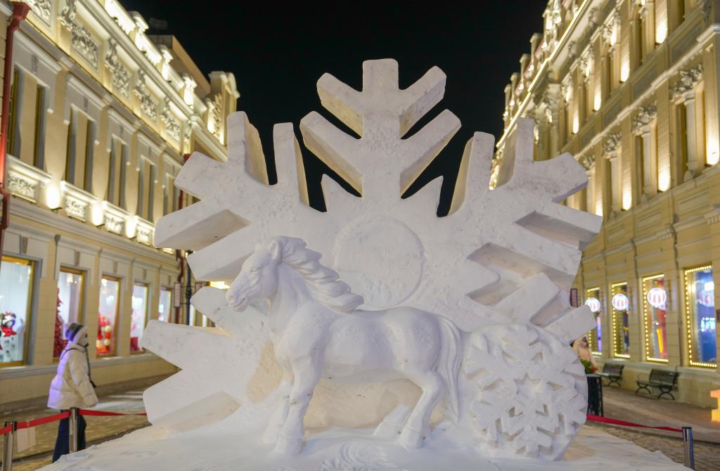 13日、中華バロック歴史文化街區に設置されている雪像。(ハルビン=新華社記者/王建威)