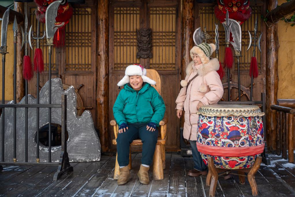 14日、中華バロック歴史文化街區で一休みする観光客。(ハルビン=新華社記者/張濤)