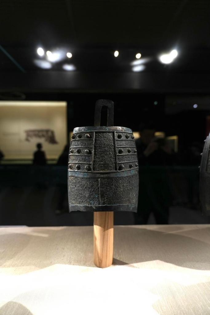 14日、「安徽淮南武王墩1號墓考古成果展」で展示された青銅編鐘。(北京=新華社記者/許蕓潁)