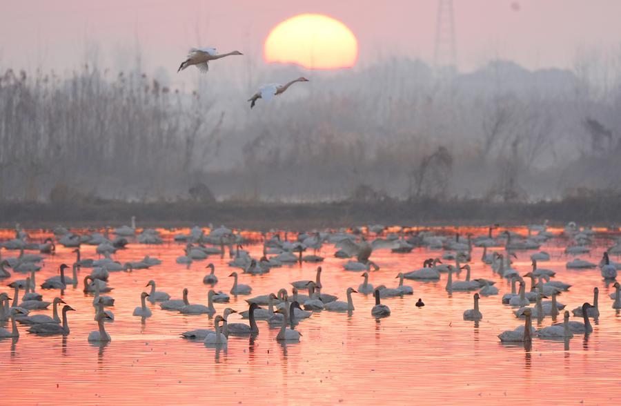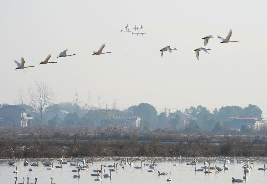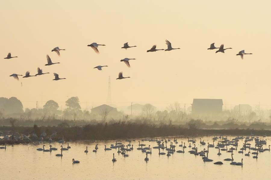【新華社岳陽1月18日】中國湖南省岳陽市の屈原管理區にある東古湖濕地では、多くの渡り鳥が越冬のため飛來する。鳥たちが淺瀬を泳ぎ、上空を舞う姿は美しい風景の一部となっている。