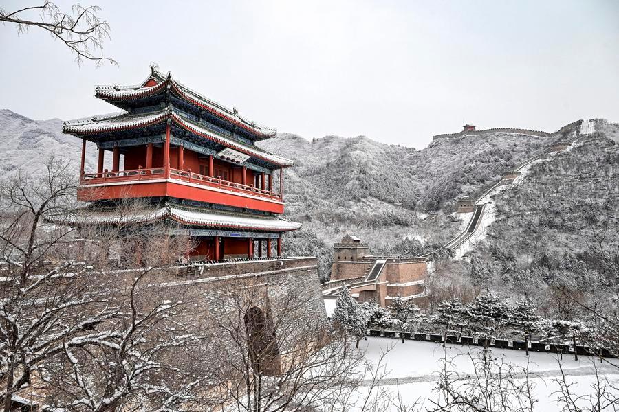 【新華社北京1月19日】中國北京市で17日から18日早朝にかけて雪が降り、市內の居庸関長城が一層壯麗な姿を見せた。