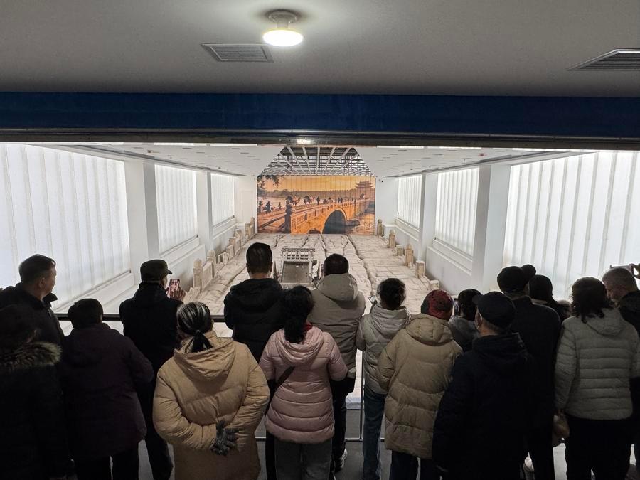 16日、鎮遠橋遺跡館で遺構を見る人たち。(太原=新華社記者/王學濤)