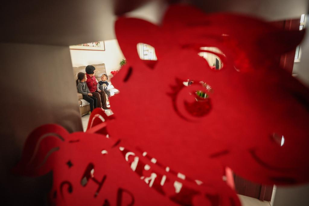 20日、自宅でテレビを見る住民。(葫蘆島=新華社記者/潘昱竜)