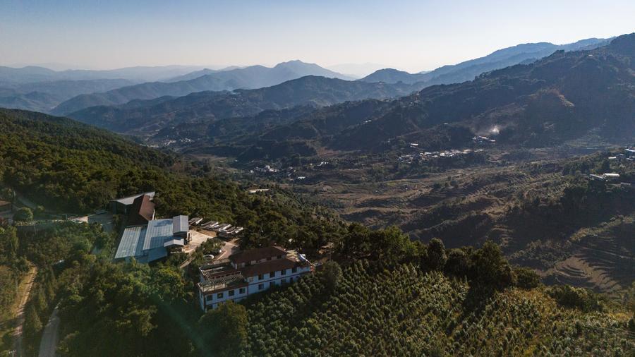 21日、臨滄市臨翔區邦東郷昔帰村にある郷昔コーヒー農園。(ドローンから、臨滄=新華社記者/高咏薇)