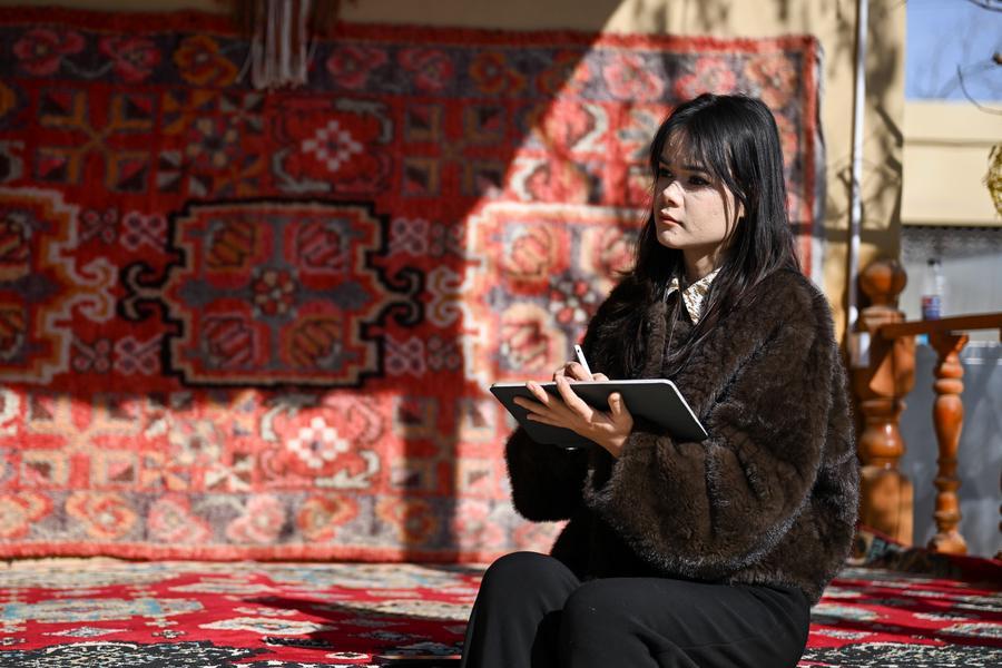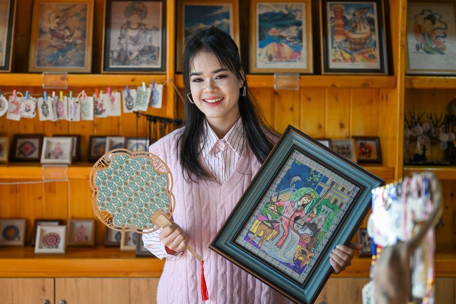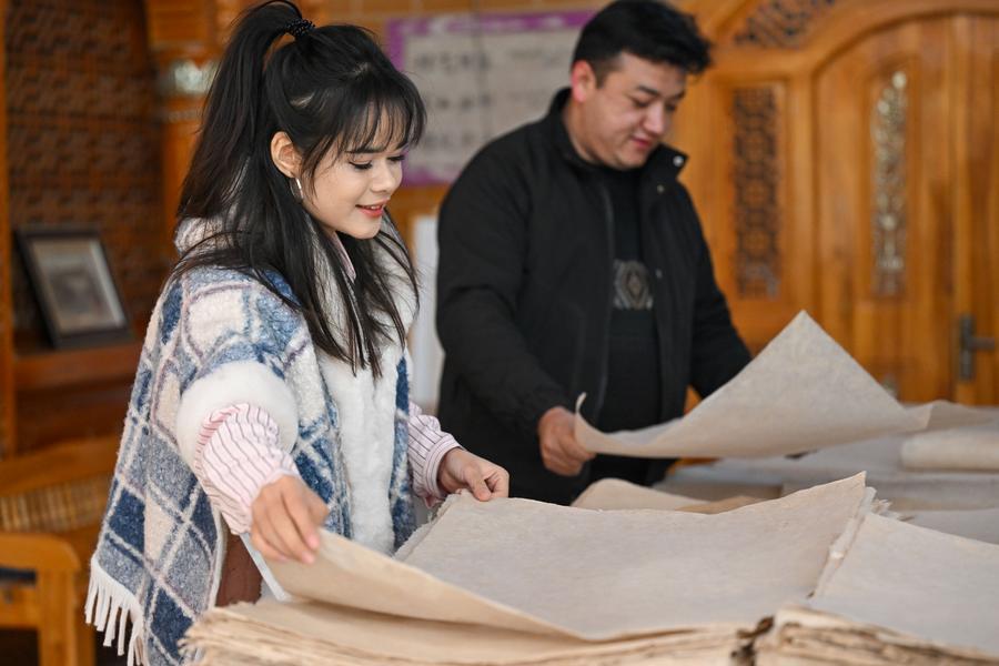 【新華社ウルムチ1月24日】中國新疆ウイグル自治區ホータン地區出身のムエセル・アへマトトフティさん(24)は、墨玉(カラカシュ)県の桑皮紙産業パークで桑皮紙(桑の樹皮を原材料として作られた紙)を使った文化クリエーティブ製品をデザインしている。