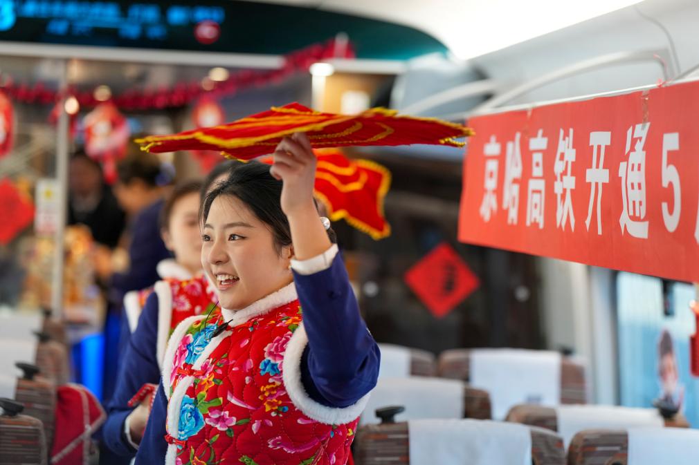 【新華社ハルビン1月24日】中國北京市と黒竜江省ハルビン市を結ぶ京哈高速鉄道が22日、全線開通から5周年を迎えた。ハルビン西駅発・北京朝陽駅行きの高速列車G902號では、運営を擔う中國鉄路ハルビン局集団が、沿線の文化・観光を紹介する記念イベントを実施した。