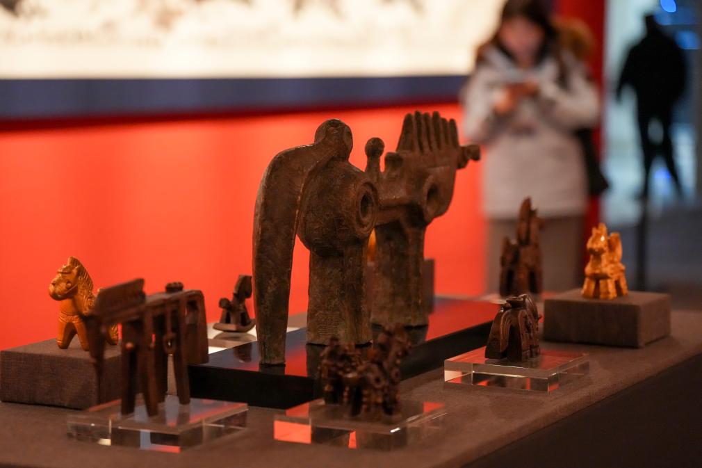 【新華社ハルビン1月25日】中國黒竜江省のハルビン市博物館で22日、中國の著名蕓術家、韓美林(かん・びりん)氏の作品展「非凡なる馬-韓美林馬年蕓術展」が開幕した。馬をテーマにした作品を中心に、水墨畫、ブロンズ彫刻、陶磁器などを展示。形の再現から內面の表現まで、創作の軌跡を紹介している。