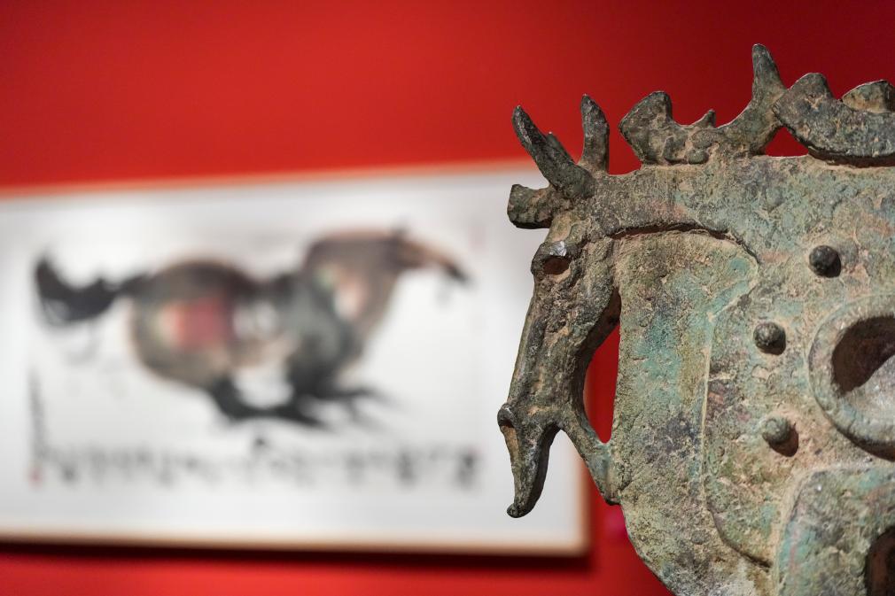 22日、ハルビン市博物館で開催されている韓美林馬年蕓術展の展示品。(ハルビン=新華社記者/王松)