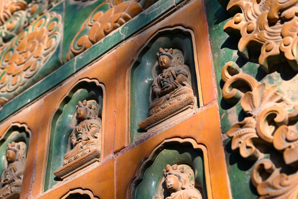 22日、琉璃閣の外壁。(北京=新華社記者/陳鍾昊)