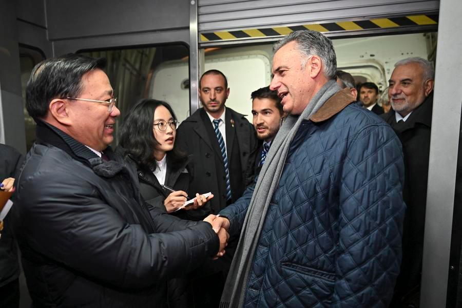1日、北京に到着したウルグアイのオルシ大統領(手前右)。(北京=新華社記者/李鑫)