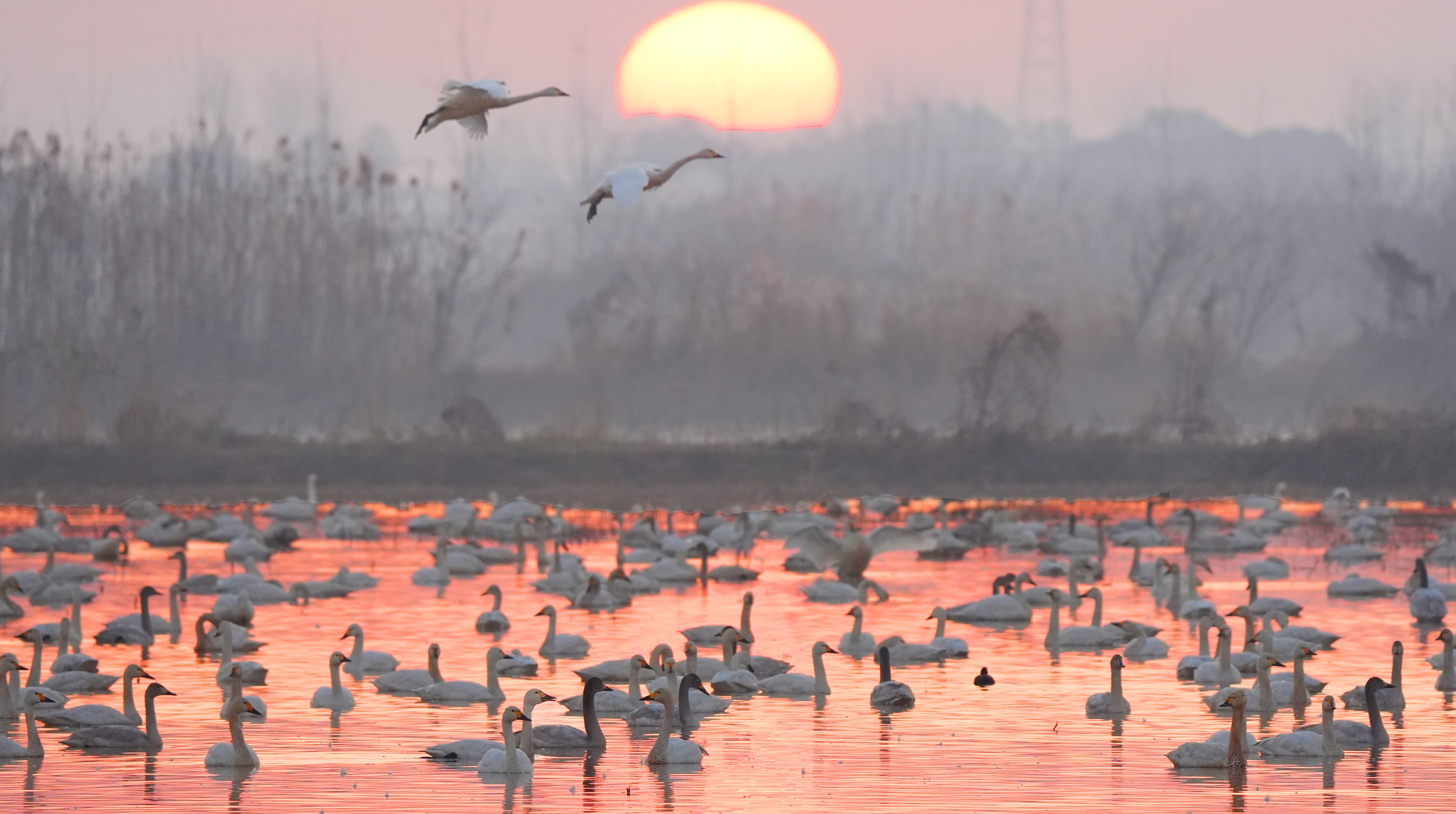 冬の東古湖濕地を舞う渡り鳥 中國湖南省 2026-01-19