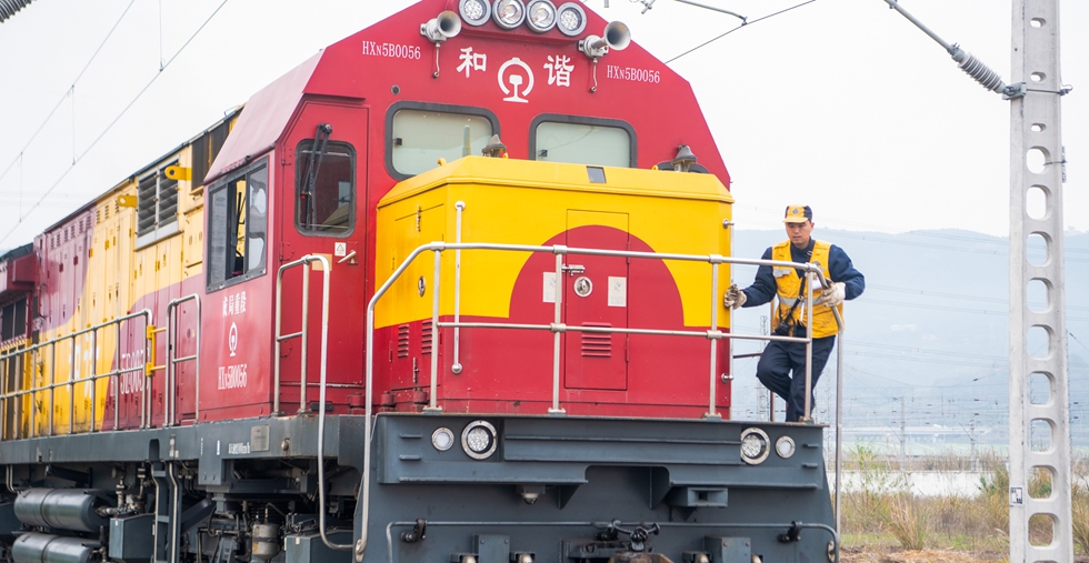 中國とシンガポールを結ぶ複合一貫輸送モデルプロジェクトの國際定期貨物列車「重慶-東南アジア班列」が15日、化學製品やオートバイ部品などを積み、重慶市の魚嘴駅を出発した。