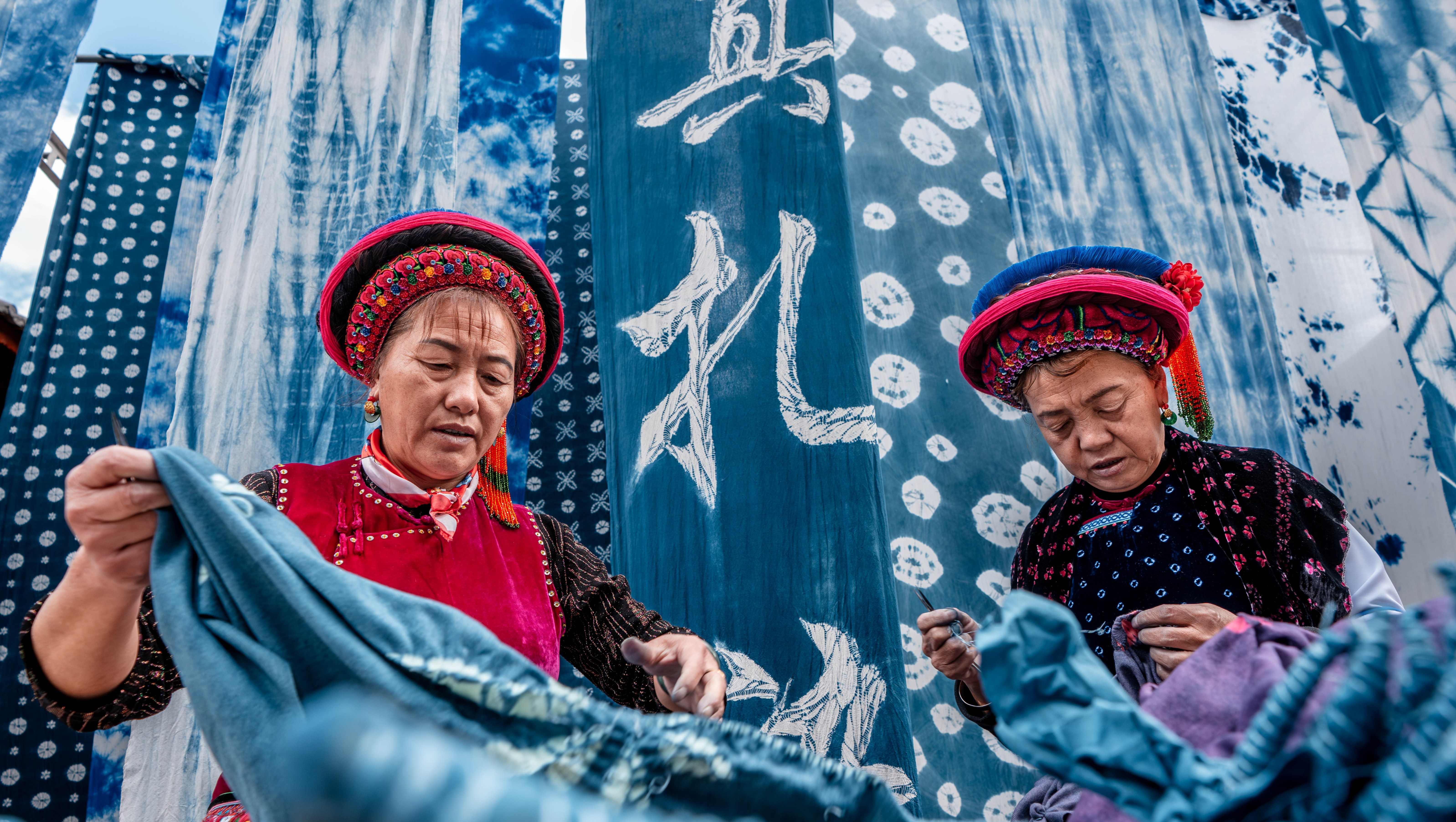指先で紡がれる藍と白の世界、ぺー族の絞り染め 中國雲南省 2025-12-02