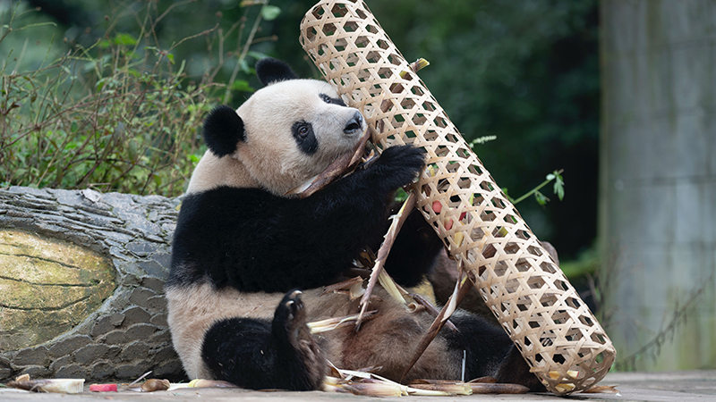 パンダ保護研究センター臥竜神樹坪基地で誕生日會 中國四川省
